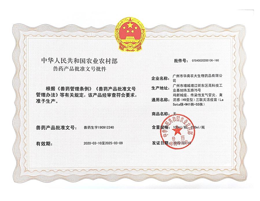 獸藥生產(chǎn)許可證:(2022)獸藥生產(chǎn)證字19091字