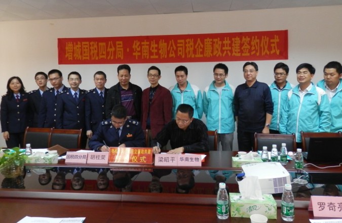 “ 增城國稅四分局·華南生物公司稅企廉政共建”簽約儀式順利舉行