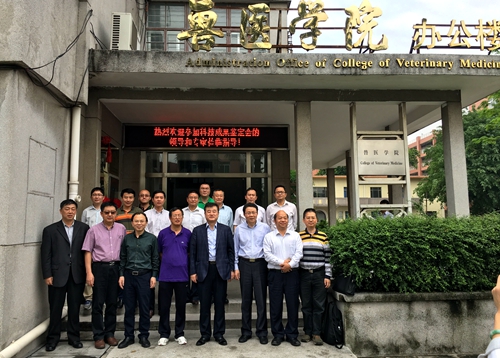 廣東省教育廳科研處副處長吳寶榆、華南農(nóng)業(yè)大學(xué)科技處副處長劉長威、獸醫(yī)學(xué)院黨委書記梁梓森、廣州市華南農(nóng)大生物藥品有限公司總經(jīng)理梁昭平、天津瑞普生物藥業(yè)有限公司代表劉海霞,以及項(xiàng)目組負(fù)責(zé)人華南農(nóng)業(yè)大學(xué)副校長廖明教授以及項(xiàng)目組成員參加了該鑒定會。
