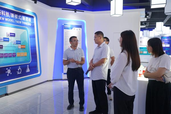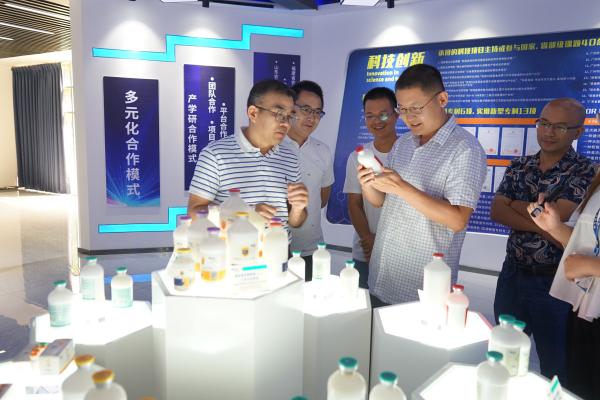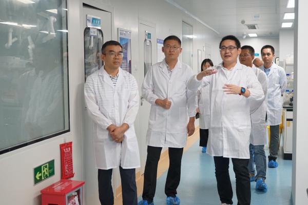 溫氏養禽事業部生產技術部技術副總經理王占新一行先后參觀了華南生物展廳、快速響應服務中心、研究院,華南生物總經理羅開健等領導全程陪同并對華南生物的發展歷程和企業文化進行了詳細的講解。快速響應服務中心張思遠主任和研究院副院長葉賀佳分別介紹當前華南生物實驗室疾病診斷流程以及研究院的研發方向。