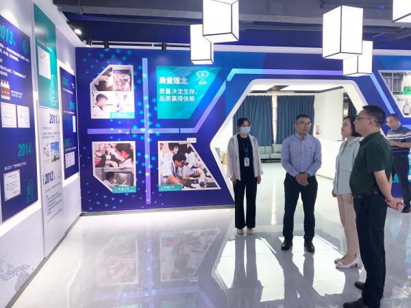 隨后,廣州市增城開發區科技創新局黨組書記、局長石霞一行參觀了公司科技創新體驗館,公司總經理羅開健等領導全程陪同并對華南生物的發展歷程、企業文化、榮譽獎項、公司產品等進行了講解。