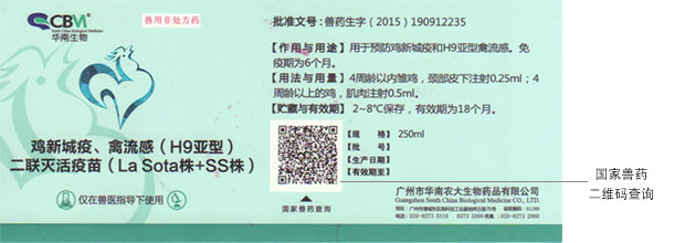 雞新城疫-禽流感(H9)二聯(lián)滅活疫苗